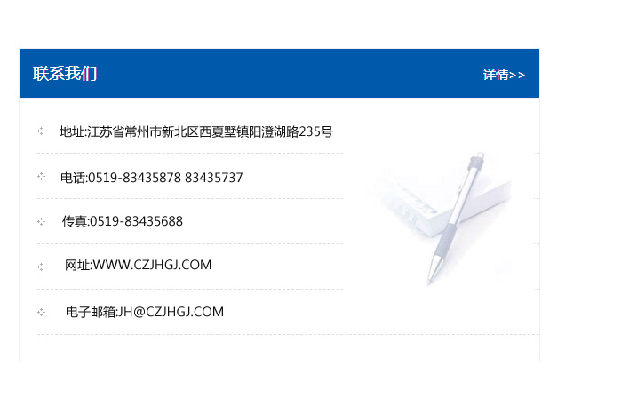 傳真:0519-83435688    郵編:213135    網址:WWW.czjhgj_com.szclener.com    電子郵箱:JH@czjhgj_com.szclener.com